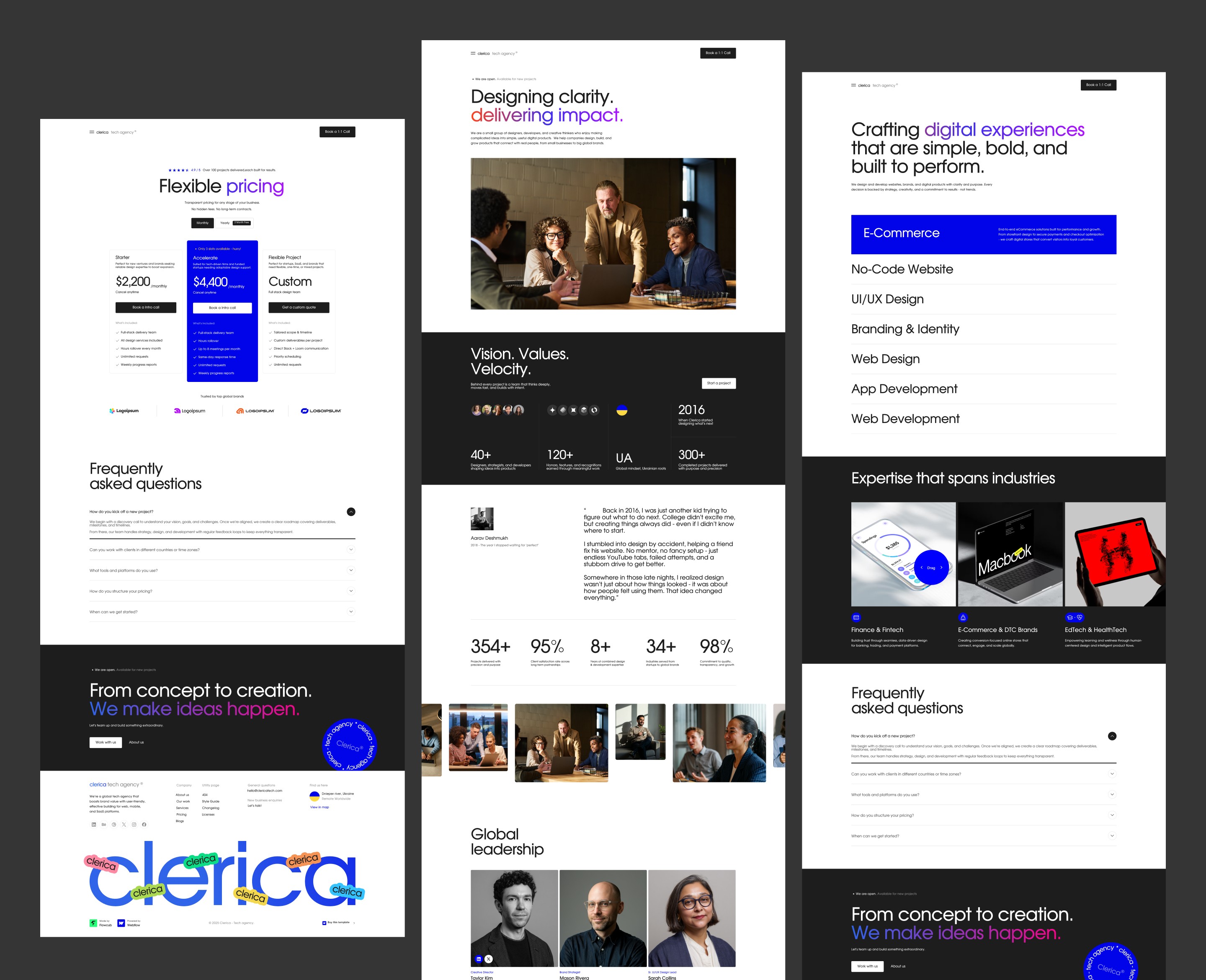 Clerica helps agencies move beyond “just a portfolio” and into a real business website that sells services.