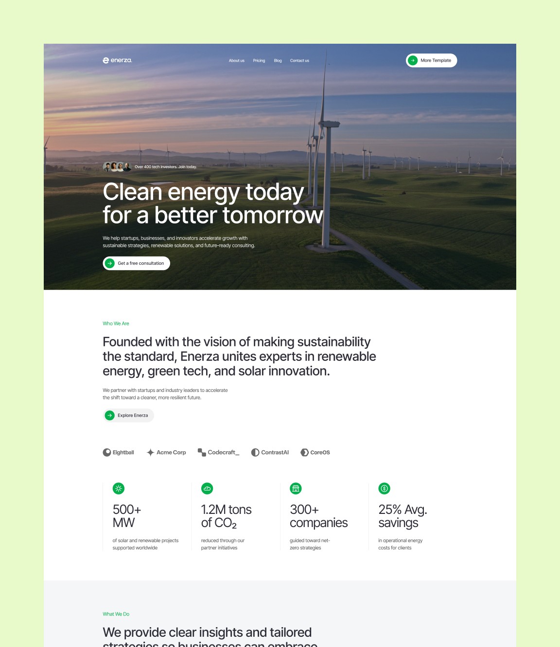 Enerza — Sustainability, Renewable Energy & Climate-Tech Brands Webflow Template