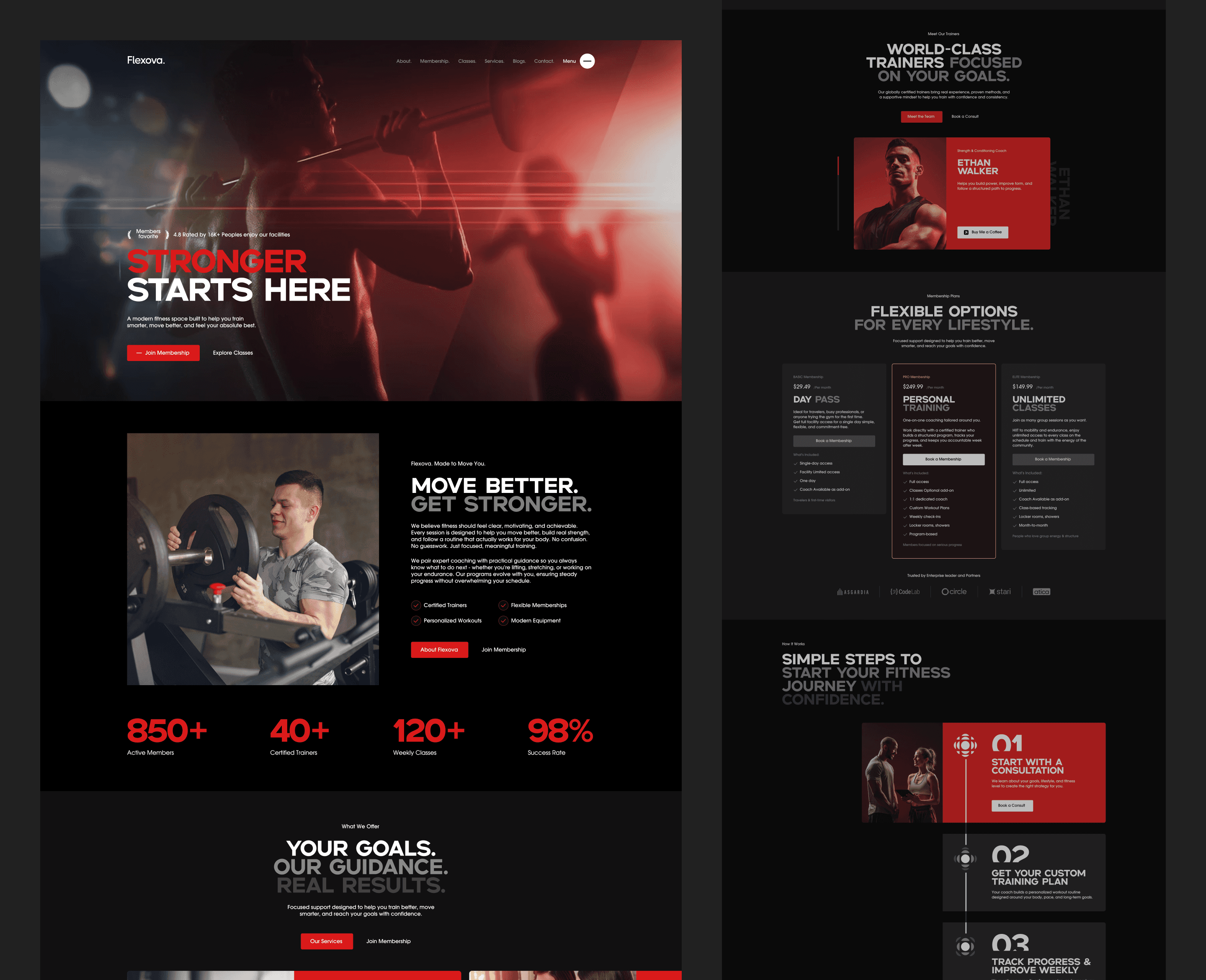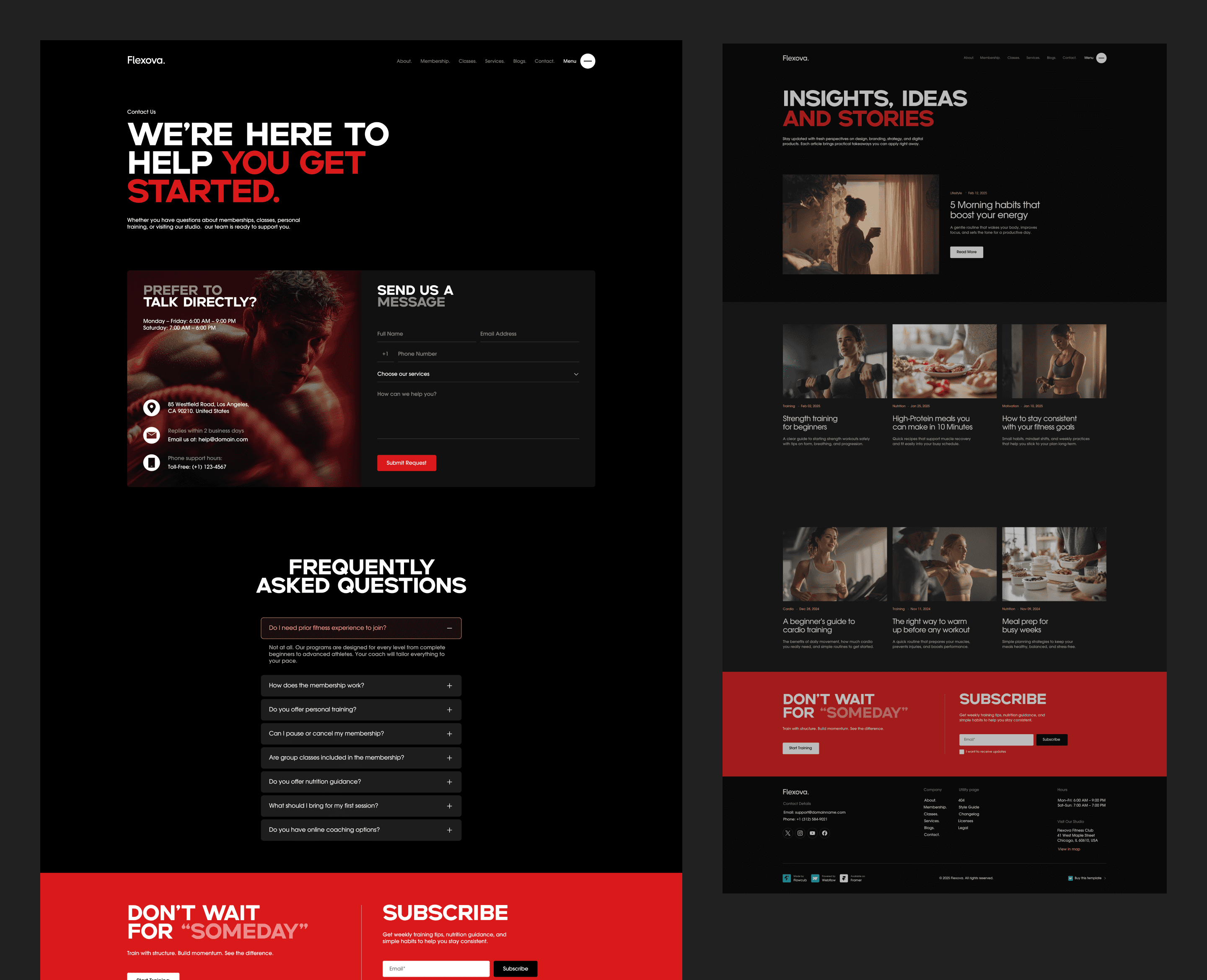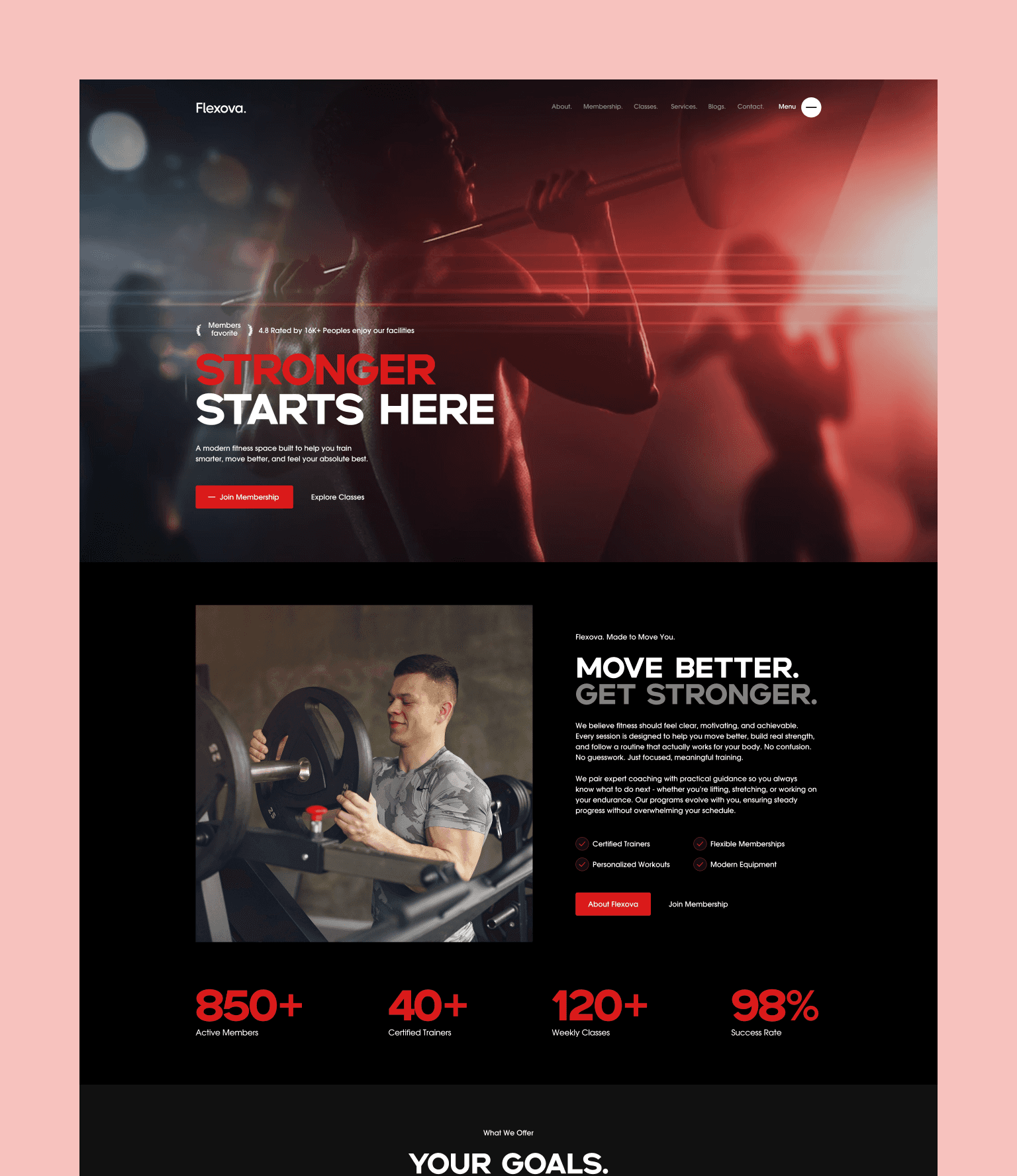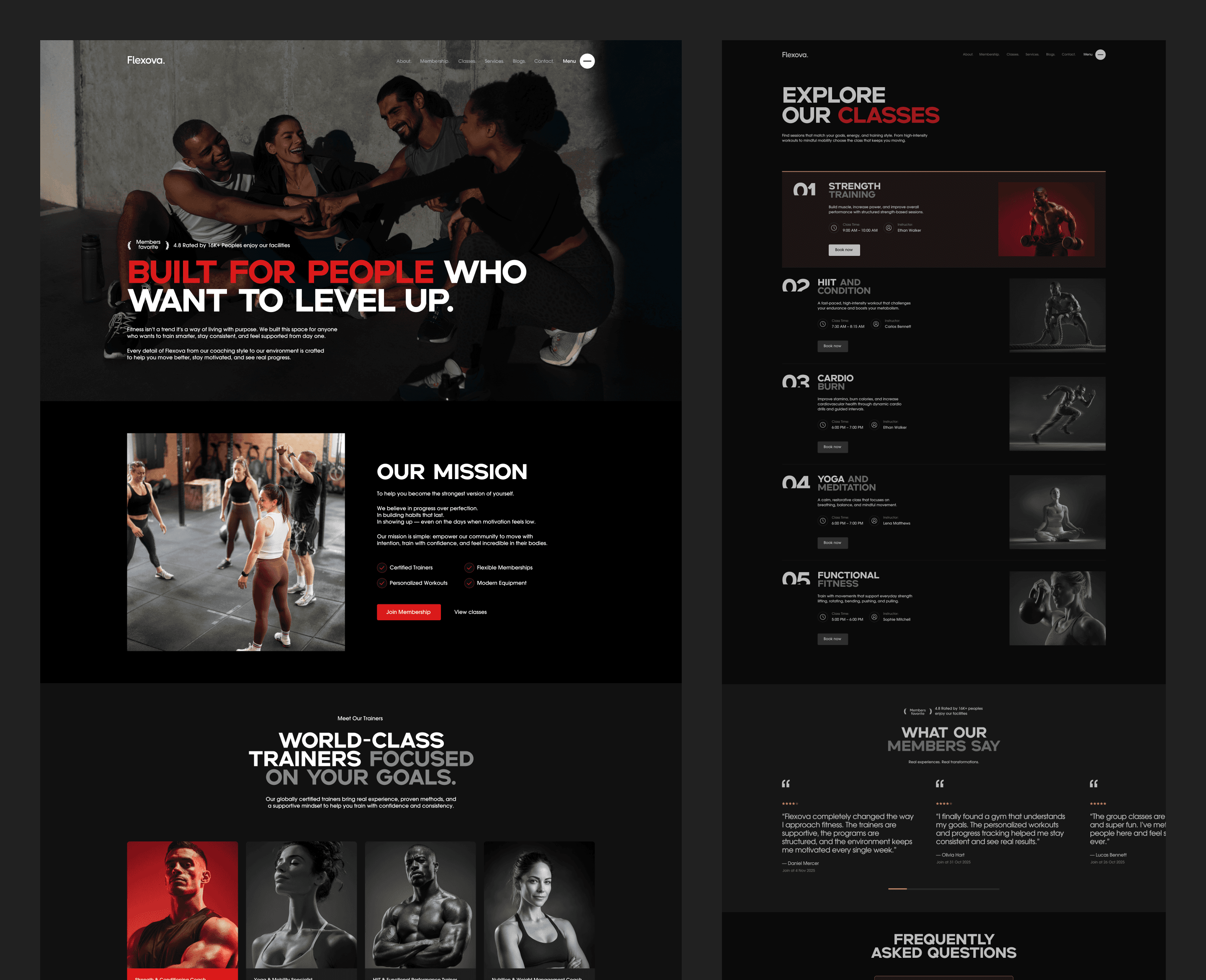 Flexova is designed to guide visitors from inspiration to sign-up. From showcasing training programs and memberships to highlighting classes, services, and success stories, every section is structured to build trust and drive membership conversions.